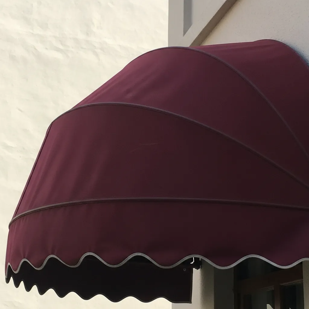 Yarım daire formuyla dikkat çeken dekoratif tente modeli. Vitrin üstleri için görsel zenginlik sunar.