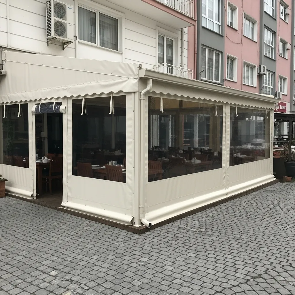 Şeffaf PVC yapısı ile iç mekânı dış etkenlerden korurken açık görüş alanı sağlar. Kafeler için idealdir.