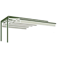Yana doğru esneyen körüklü sistemiyle özellikle küçük işletmelerde etkili bir gölgelendirme sağlar.